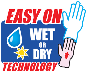 With EASY ON, gloves slide on easy, no matter if you have dry, hot, damp, sweaty, or wet hands. No tugging, no struggling, just on, fast.