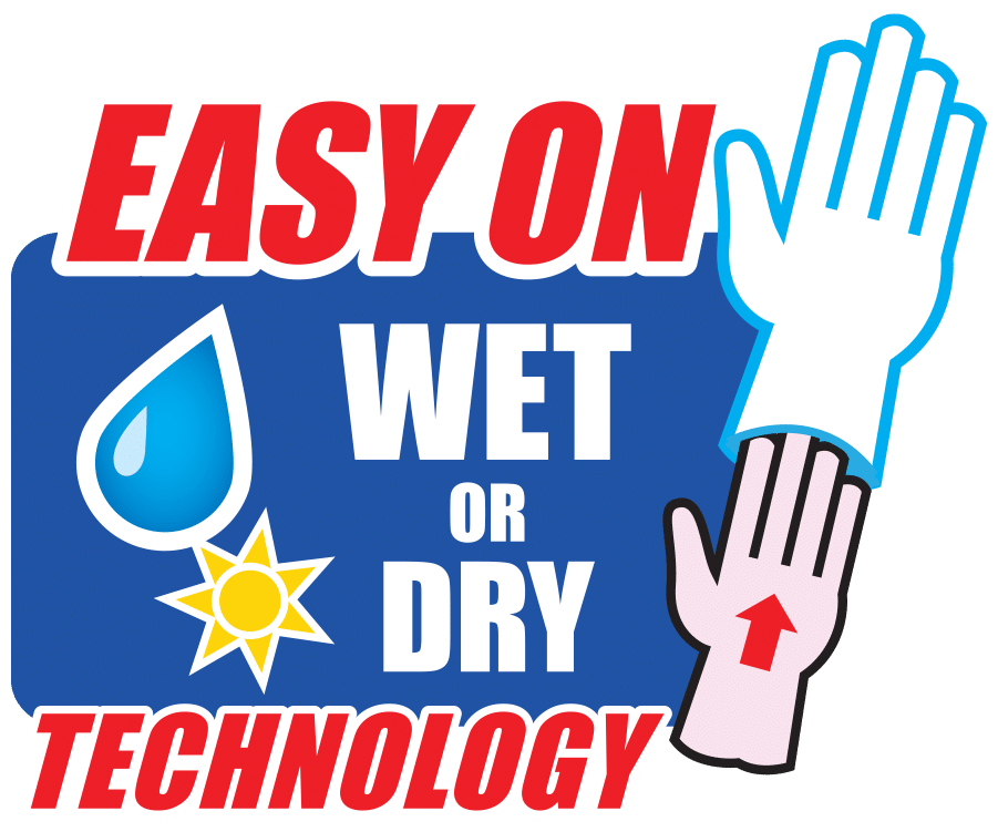 With EASY ON, gloves slide on easy, no matter if you have dry, hot, damp, sweaty, or wet hands. No tugging, no struggling, just on, fast.