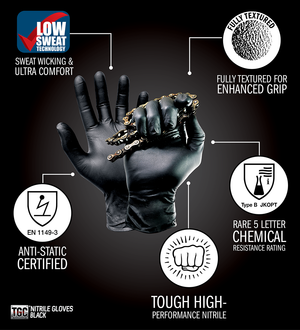 The glove that changed the industry, the first Black Nitrile Glove in Australia. The Glove Company’s custom formulation set the benchmark in industrial black nitrile and is still the highest performing black nitrile glove across the industry. Enhanced with Low Sweat Technology to reduce sweat and irritation by neutralising the pH level between your hands and glove.