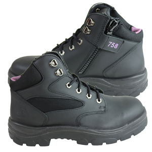 The Ladies Parkes Zip is a 95mm hiker style lace up Ankle Boots with a side zip for convenience. Crafted from premium Black Water-Resistant Leather and stitched with nylon thread, the Ladies Parkes Zip is a tough and durable work boot. Boasting a 200 joule Steel Toe Cap, TPU Outsole with heat resistance up to 130 degrees and a padded collar and tongue for extra comfort, the Ladies Parkes Zip is an all-rounder offering 100% Comfort, guaranteed.