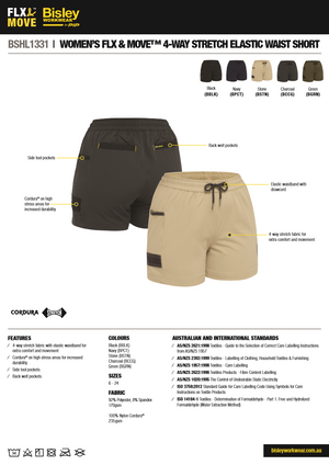 Shorts Bisley Womens F&M 4-Way Stretch Elastic Waist BSHL1331